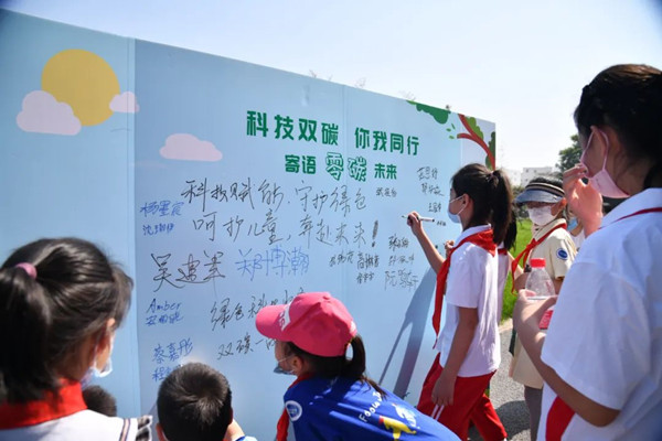 在零碳涂鸦墙,刚刚完成的“保定·中国碳中和产业之都”几个大字格外显眼。高新区执法局工作人员同各亲子家庭共同绘制零碳科普图画,孩子们在家长的带领下,用稚嫩的双手和家长一起勾画美好生活,表达自己对绿色家园、零碳未来的畅享与憧憬。“此次开放日活动很有意义,一方面让公众特别是孩子们近距离接触光伏发电以及绿色建筑,增强低碳环保、科技创新意识,另一方面倡导公众从生活中的点滴做起,自觉维护生态环境,为保卫我们的绿色家园尽一份力。”参加活动的学生家长张女士表示。