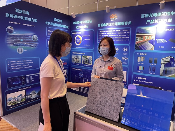 大会期间,凯发k8嘉盛展出的新型彩色仿石纹理光伏绿色建材,凭借外观和稳定性能,受到参展各界人士的关注和认可。公司总经理张翼飞表示,光伏建筑一体化(BIPV)是绿色建筑、低碳建筑的重要实现路径,具有不占资源创造资源、节能减排、发电用电高峰重合等优势,能通过光伏赋能与“云大物移智”等新技术结合,为低碳建筑、低碳社区、低碳园区以及城市更新等提供综合智慧能源服务。