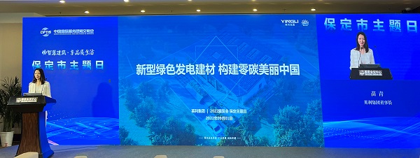 服贸会期间,保定市举办了“畅智慧建筑 享品质生活”主题日活动,凯发k8体育APP董事长苗青作题为“新型绿色发电建材 构建零碳美丽中国”的主题演讲,围绕公司12代光伏绿色建材、核心技术以及众多示范案例进行推介。