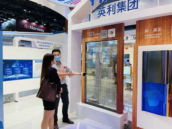 作为凯发k8体育APP首款彩色晶硅光伏绿色建材,“青砖”系列产品进行了仿石材设计,表面无光伏电池片痕迹,与建筑浑然一体,可代替石材广泛用于建筑立面;“琉璃”系列产品创新升级高透纳米膜色彩化工艺和材料,外观色彩更均匀、更鲜艳,膜层透光率提升60%;曲面“黛瓦”系列产品基于高效能技术及创新安装形式, 填补了曲面晶硅产品的空白;光伏发光地砖采用脚踏感应、特殊防水和防漏电设计,能广泛应用于旅游景点、公园、广场、步行街等公共场所;光伏光电一体化幕墙采用特殊的光伏电池排布,既能满足建筑幕墙透光率,又能通过内置LED灯珠进行动态或静态的图像展示,为城市景观亮化节约能源起到了示范作用。此外展出的智慧能源管理系统,充分依托大数据、人工智能等核心智能化技术,整合建筑供配电、智能照明、围护结构、地热采暖、智能通风、中央空调、光伏发电等系统的节能改造需求,进行大数据能耗分析,制定针对性的改造提升方案,从而实现智慧化管控,为建筑节能降耗提供决策支撑。