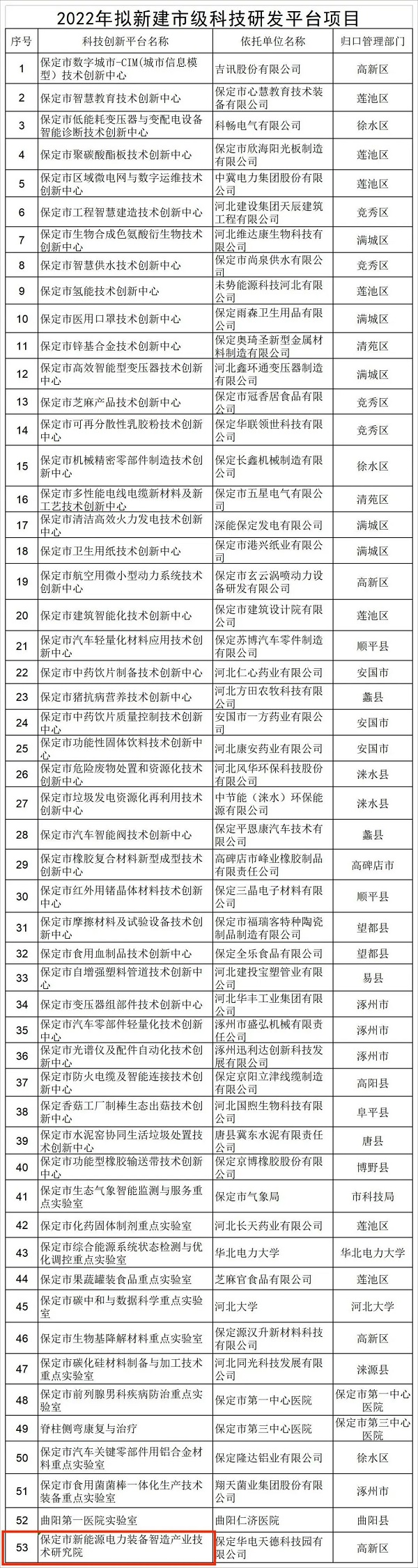 科技研发平台建设是提升区域科技创新水平的重要载体,是实现产业链-供应链-创新链协同发展的坚实保障。为加快建设以企业为主体、市场为导向、产学研深度融合的技术创新体系,贯彻落实保定市科技发展规划,引导和支持企业增强技术创新能力和核心竞争力,2022年9月,保定市科技局组织相关专家对归口管理单位推荐申报的2022年度保定市重点实验室、技术创新中心、产业技术研究院建设项目进行评审,包括凯发k8嘉盛在内共有新建市级研发平台53家。