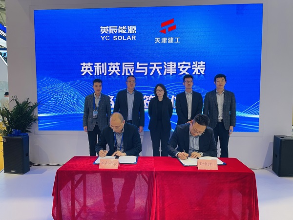 据悉,展会首日,英辰新能源与天津安装工程有限公司签署战略合作协议,双方将充分发挥优势互补,在全国范围内就光伏项目开发、建设、组件供应等业务领域开展全方位战略合作,共同开辟光伏广阔的发展空间。