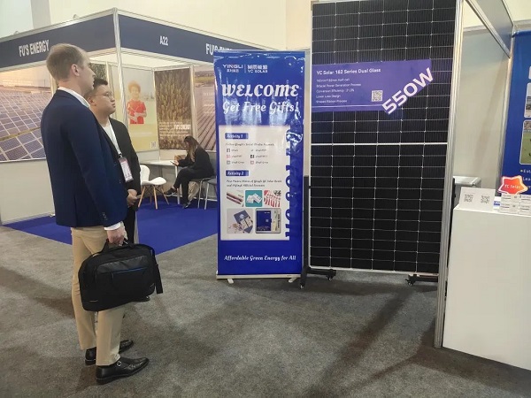 “此次,英辰新能源针对埃及和周边市场干旱、多风沙等自然环境特点,重点展示了公司依托智能制造、质量管控体系研发的零隐裂、高品质YC系列光伏产品以及全新一代光伏绿色建材。”英辰新能源现场负责人介绍,YC系列产品不仅具备高功率输出品质,而且能够满足全场景生态需求,具有适应力、融合力、抵抗力强的特点,在山地、沙漠、海上、沿海滩涂、湖泊等生态环境表现优异;BIPV(光伏建筑一体化)作为绿色建筑的主流形式,高度契合了绿色建筑的发展潮流,代表了城市和建筑能源发展的未来趋势,吸引了众多新老客户到场洽谈。