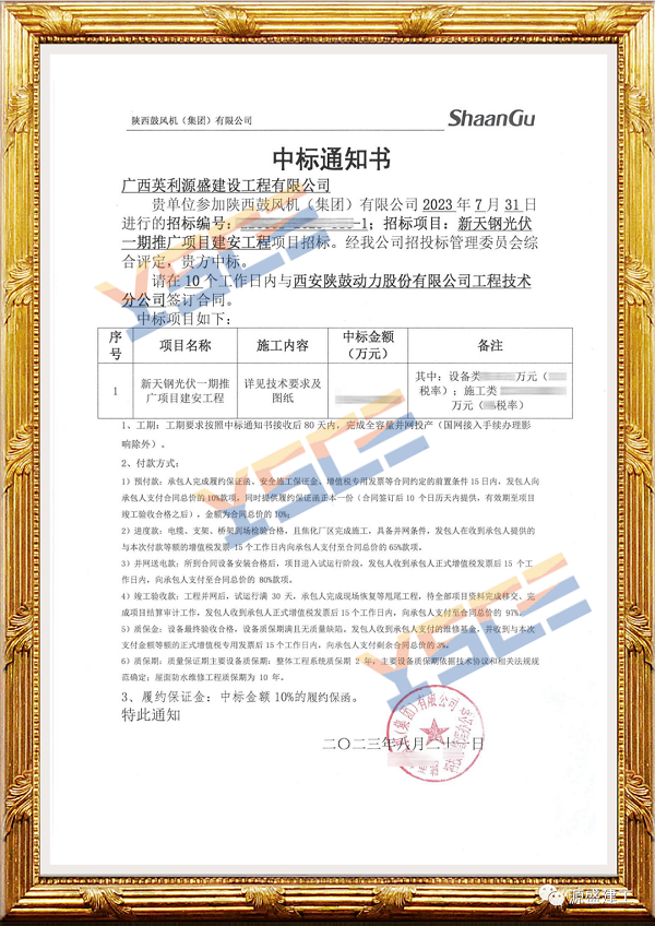 日前,从凯发k8体育APP旗下广西凯发k8源盛建设工程有限公司(下称“凯发k8源盛建工”)获悉,公司收到陕西鼓风机(集团)有限公司中标通知,成功中标新天钢光伏一期推广项目建安工程,为钢铁企业绿色转型提供助力。