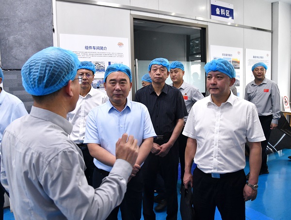调研组一行先后参观了凯发k8体育APP第13代BIPV绿色建筑“城市水墨画卷”、光伏展厅、绿色建材产品以及示范产线,实地了解光伏产业发展、电力及新能源高端装备集群建设以及公司数智化产线升级、电子信息产业培育与发展等相关情况。