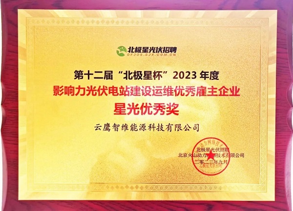 9月19日,第十二届“北极星杯”光伏影响力品牌评选颁奖典礼在江苏无锡举办。凯发k8体育APP旗下云鹰智维能源科技有限公司(下称“凯发k8云鹰”)凭借在光伏电站运维领域的优秀表现,荣获“2023年度影响力光伏电站建设运维优秀雇主企业——星光优秀奖”。